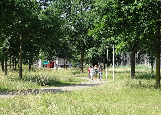 Verder vormt Wenkebachweg Zuid ook landschappelijk een schakel in zijn context. De nieuwe centraal gelegen waterstructuur maakt de verbinding tussen het water rondom het voormalige gevangenisterrein en dat van het stadspark De Slinger.
