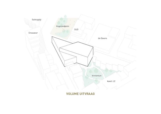 De opsplitsing heeft ook gezorgd voor meer toetreding van daglicht in de appartementen aan de 'binnenzijden' en zicht op het groen op de daktuin die tussen de blokken doorloopt. Deze semi-openbare tuin vormt tevens een visuele verbinding, door het gebouw heen, van het Hogelandplein en de (nog aan te leggen) binnentuin van kavel L2.