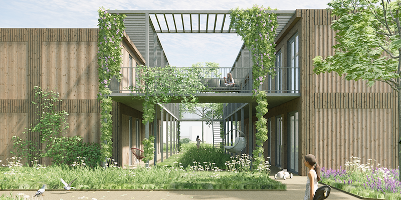 Het project van SVP omvat 51 studio’s, 30 tweekamerwoningen (waarvan 14 toegankelijk voor rolstoelgebruikers) en een gemeenschappelijk paviljoen. De verschillende gebouwen, met een grote variatie van woningen, voldoen aan alle eisen voor permanente woningen. Op het gebied van duurzame materiaaltoepassing presteren ze zelfs beduidend beter, met MPG-scores tussen 0,46 en 0,50, en bijna 50 procent van de bouwmaterialen is biobased. Daarmee is zijn de woningen ook een goede illustratie van de ambities en ontwerpopvattingen van SVP. Het bureau staat, naar eigen zeggen, voor hoge kwaliteit en aandacht voor een duurzame leefomgeving. Ambities die dus ook gelden bij het ontwerpen van tijdelijke woningen, zo bewijst dit project.
