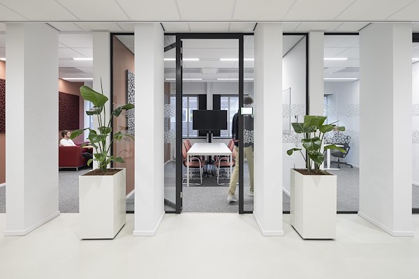 De werkomgeving is ingedeeld volgens de principes van Activiteit Gerelateerd Werken. Er is uitgebreide variatie in werkplekken wat betreft omvang en functie, zodat er een veel verschillende overlegvormen en werkactiviteiten kunnen plaatsvinden.