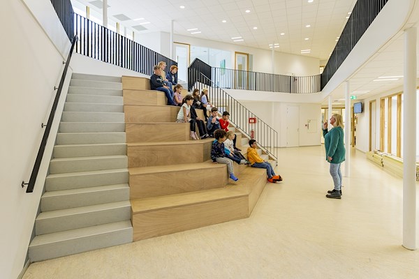 De originele plattegrond is behouden gebleven, maar het gehele interieur is vernieuwd. Daardoor heeft de school een nieuwe, frisse uitstraling gekregen. Het gebruik van hout en natuurlijke kleuren zorgt voor een rustige sfeer, terwijl dankzij het vele glas in de gevel ruim daglicht binnenkomt.