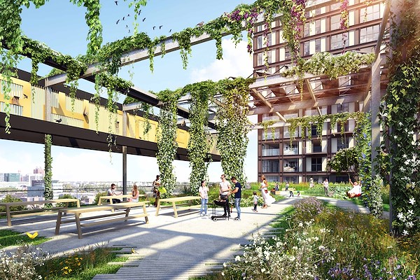 Verbinding en groen centraal in woon- en werkgebouw Fokkerhaven