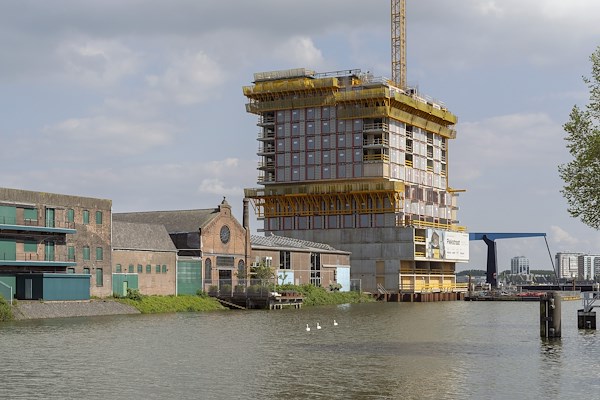 Op het eiland van Feijenoord in Rotterdam wordt momenteel gebouwd aan de woontoren aan de Piekstraat. Het door