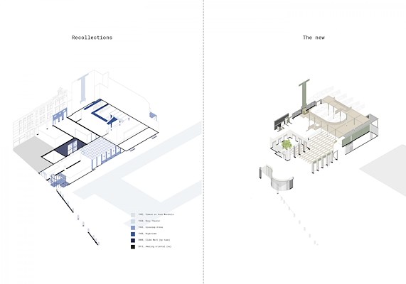 “De hoofdrolspeler van dit plan is een door sloop en transformaties gehavend gebouw aan de West-Kruiskade in Rotterdam, dat ooit een poppodium was. De ontwerper onderzoekt minutieus de ruim 100-jarige geschiedenis en herstelt het complex als een monument van herinnering, met een nadruk op tijdlagen en fenomenologie. Het resultaat is een poëtisch en gelaagd narratief, waarbij architectonische elementen als 'recollections' worden geherintroduceerd en de geschiedenis van het gebouw zowel visueel als auditief tot leven komt.”