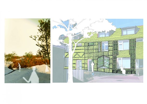 “Dit plan onderzoekt het gebruik van regionale biobased materialen om slecht geïsoleerde woningen in bloemkoolwijken uit de jaren '70 en '80 te verduurzamen. Door lokaal verbouwde grondstoffen te gebruiken voor de gevelbekleding, brengt dit hands-on project architectuur en landschap op een laagdrempelige manier samen. De ontwerper slaagt erin een charmeoffensief op gang te brengen en vanuit het perspectief van renovatie het debat over een grootschalige verduurzamingsopgave te voeren voor deze woonwijken met een gedateerd imago.”