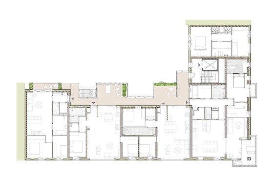 Elke bewoner had de vrijheid zijn eigen aantal vierkante meters binnen het blok te bepalen. Dit resulteerde in een gezamenlijke indeling die aan de diverse individuele behoeftes voldeed. In nauwe samenwerking met constructeurs en akoestische adviseurs is het constructiepakket uit CLT verder ontwikkeld tot een efficiënt en bouwbaar geheel.
