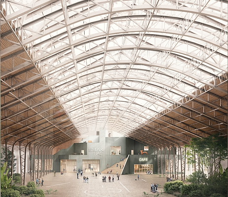 De architecten willen de Floraliënhal bovendien – naast de materiële restauratie – zijn voormalige rol van ‘reusachtige serre’ teruggeven. “Het is een radicale omkering van het S.M.A.K., maar een evidente transformatie voor de Floraliënhal”, verklaren het winnende ontwerpteam.