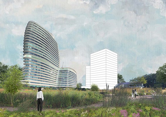 van de Belastingdienst en DUO, ontworpen door UNStudio, is 92 meter hoog. Bij het ontwikkelen van het kantoor en het omliggende gebied is er veel aandacht voor duurzaamheid, de groene omgeving en de belevingswaarde.