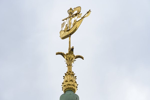 Koning Willem-Alexander opent donderdag een tentoonstelling in het Koninklijk Paleis Amsterdam, waar kunstwerken te zien zijn die normaal gesproken op het dak staan. Bezoekers kunnen bijvoorbeeld kijken naar de gouden windvaan en het metershoge bronzen beeld Prudentia (Voorzichtigheid), dat voor het eerst sinds 1667 van het dak is gehaald. Ook de koperen keizerskroon en 24 originele Hemony-klokken uit het carillon zijn te zien.