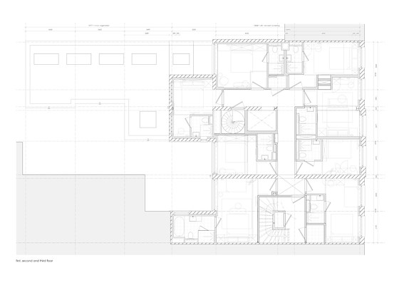 De indeling van het hotel, zoals derksen|windt architecten haar aantrof, was ontstaan door vele kleine aanpassingen in de loop der tijd. De ontsluiting van de kamers verliep via tal van kleine gangen en trappenhuizen. Alle verdiepingen zijn volledig opnieuw ingedeeld. Er is een nieuw trappenhuis en op elke verdieping één centrale gang langs de kamers gerealiseerd.