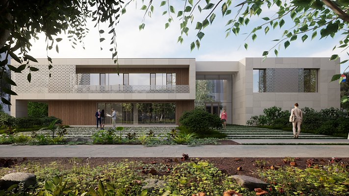 ontwierp een compact gebouw waarin binnen en buiten op verschillende manieren met elkaar zijn verbonden. Mede dankzij het all-electric concept en volledig zonnedak met zonneschoorsteen wordt het de eerste Nederlandse ambassade met een BREEAM Excellent-certificering.