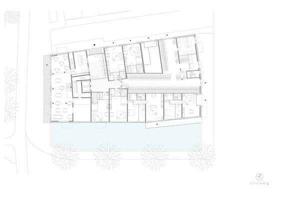 . Entrees van de woningen en appartementen in de toren zijn – behalve aan de waterzijde – rondom het woongebouw gesitueerd. Dit geldt ook voor de woonruimten en op de begane grond. Met bovendien horeca aan de zijde van de Papsouwselaan zijn er levendige pinten aan alle omliggende straten en het park, vertellen de architecten.