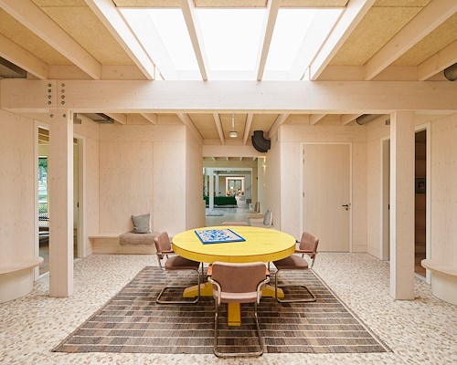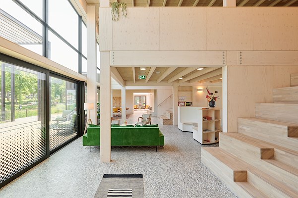 De basis van het gebouw is een flexibele modulaire en circulaire houten kolommenstructuur, ingevuld met houtskeletbouwwanden. Ruimtes kunnen worden gekoppeld en multifunctioneel worden gebruikt. Het gebouw bestaat uit een vloeiende reeks ruimtes, geheel zonder gangen.