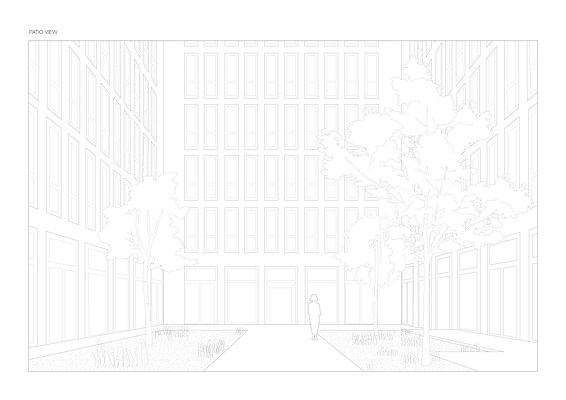 De geanodiseerde aluminium kozijnen variëren in kleur: brons voor het hotel, de directe omgeving weerspiegelend, en zilver voor de kantoren, wat een ton-sur-ton aluminium/beton-esthetiek tot stand brengt. Aan de straatzijde liggen de kozijnen verdiept en verborgen, waardoor de uitstraling van het beton wordt versterkt. Aan de patiozijde liggen de kozijnen vlak in de gevel, zodat ze het ‘uitgesneden effect’ van de patio’s versterken en licht wordt weerspiegeld in het glas en de forse aluminium kozijnen.