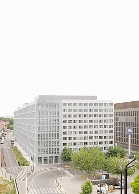 Het hotel bevindt zich aan de stedelijke noordzijde van het gebouw, terwijl de kantoren gericht zijn op het park. Het 180 kamers tellende budgethotel is strategisch aan de Place Front Populaire gesitueerd, om dit plein te verlevendigen. Winkels, lobby's, recepties, restaurants, cafés en terrassen verbinden het gebouw met de openbare ruimte op de begane grond en het dak.