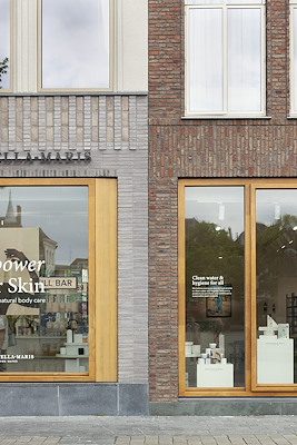 Naast een baksteen van StoneCycling, gemaakt van gerecyclede bakstenen en toiletpotten, is gekozen voor een vormsteen van Vogelensangh, gebakken in de oudste en enige ringoven die Nederland nog rijk is, vertelt HP architecten. Geanodiseerde aluminium kozijnen zijn toegepast naast zware, gevingerlaste houten kozijnen en minimalistische stalen kozijnen. De kroonlijst bestaat uit houten delen en zachtglanzende groene en grijze keramische elementen.