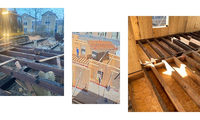 De remontabele huisvesting kan na vijf jaar uit elkaar worden gehaald en op een andere plek weer in elkaar gezet worden. Er zijn enkel droge verbindingen toegepast en de woningen zijn voorzien van houtskeletbouwwanden, houten vloeren en houten daken. Het lichte gewicht heeft ervoor gezorgd dat er geen heipalen benodigd zijn. De fundering bestaat uit stelconplaten met daarop stalen balken.