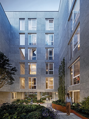 Het door archipelago ontworpen gebouw wordt omringd door groen, een conditie waarvan gebruik is gemaakt door veel uitzicht te creëren. Ook is op het maaiveld een colonnade gerealiseerd, die de overgang van binnen naar buiten verzacht.