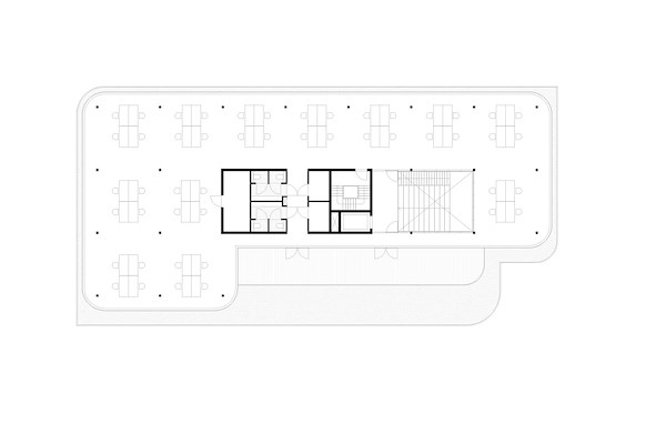 De hoofdconstructie van het gebouw bestaat uit houten kolommen, liggers en CLT-vloeren. De parkeerkelder en stabiliteitskern zijn uitgevoerd in beton. Rondom deze kern heeft het kantoor een vrij indeelbare plattegrond. Centraal ligt een afsluitbaar podium met tribunetrap, geschikt voor bijvoorbeeld presentaties en bijeenkomsten.