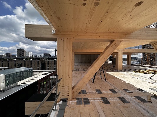 In Rotterdam is het hoogste punt van woongebouw Sawa bereikt. Deze mijlpaal werd symbolisch gemarkeerd door de plaatsing van een nestkast op vijftig meter hoogte, die door de betrokken partijen als ‘penthouse voor de slechtvalk’ wordt aangemerkt. Hoewel de bouw al twee jaar aan de gang is, werd sinds de start van de houtbouwfase in slechts 26 weken de volledige hoogte van het gebouw gerealiseerd.
