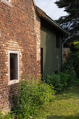 Deze monumentale hoeve in Maastricht uit 1843 is getransformeerd tot woon- en werkatelier. Door hergebruik van eigen mergelblokken en veldbrandstenen bleven de historische elementen van de oorspronkelijke boerderij met binnenplaats behouden, terwijl circulaire bouwmethoden en ecologische materialen zijn geïntegreerd.