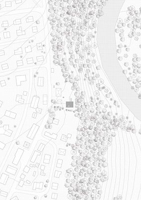 In tegenstelling tot de onderste woonlaag bestaat de bovenverdieping uit een open plattegrond. Midden in de ruimte staat een meubelachtig multifunctioneel volume, waar de bewoners omheen kunnen lopen, langs de grote ramen. Op de meeste zonnige hoek bevindt zich een overdekt balkon: vanaf deze plek wordt het beste zicht over het rivierdal geboden.