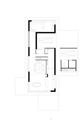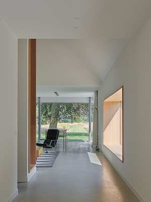 Het langgerekte volume van het woonhuis wordt gekenmerkt door de lage kap en het grotendeels lege dakvlak. De plattegrond is een schakering van open ruimtes georganiseerd rondom de dubbelhoge woonkamer. Door de configuratie van de verschillende ruimtes binnen het rechthoekige volume ontstaan afzonderlijke plekken met verschillende hoogtes en oriëntaties, meldt Bedaux de Brouwer Architecten.