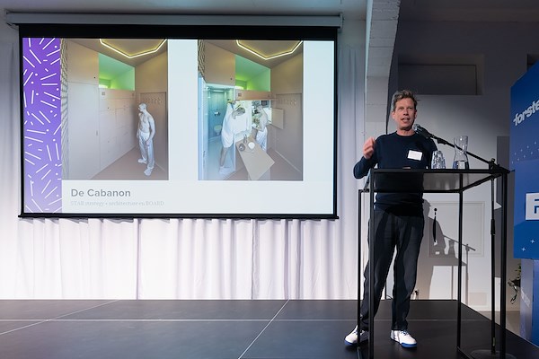 Jurylid Jörn-Ole Stellmann presenteert de prijs voor Zorggebouw van het Jaar 2024