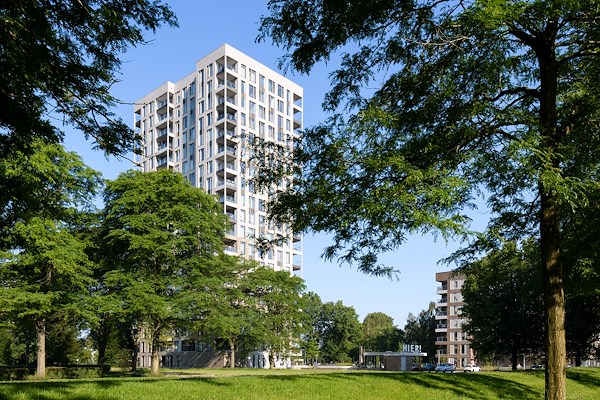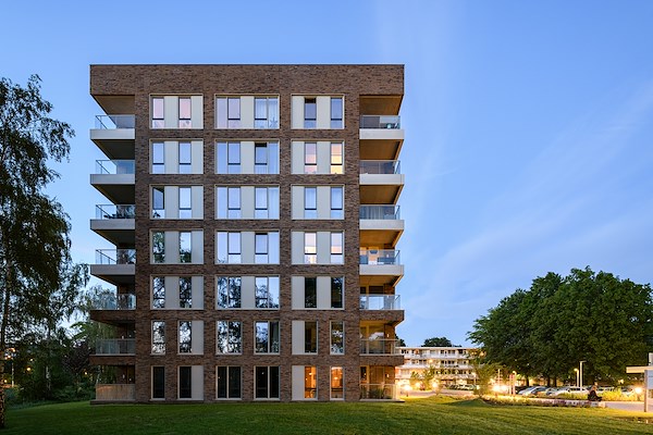 Op een plek tussen het stadscentrum van Amersfoort en de gordel van naoorlogse woonwijken zijn twee woongebouwen naar ontwerp van