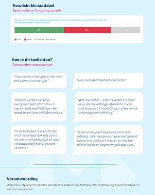 De invoering van een label, waarin onder meer staat hoeveel risico een woning loopt op funderingsschade, juicht 76% van de respondenten toe. Zo’n label is nog in ontwikkeling, maar zou een goede eerste stap kunnen zijn naar verbeterde informatievoorziening, zegt Fernández van Leeuwen-Leenman.