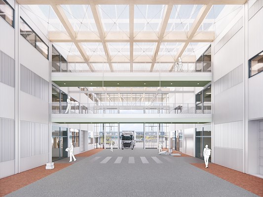 In het interieur geeft het architectenbureau het materiaalgebruik een belangrijke rol in het realiseren van een gezonde en prettige omgeving voor de gebruikers. De toe te passen materialen zijn circulair en biobased. Verder combineert het ontwerp de warme tinten van het hout met aardse roodtinten en fris, helder groen.