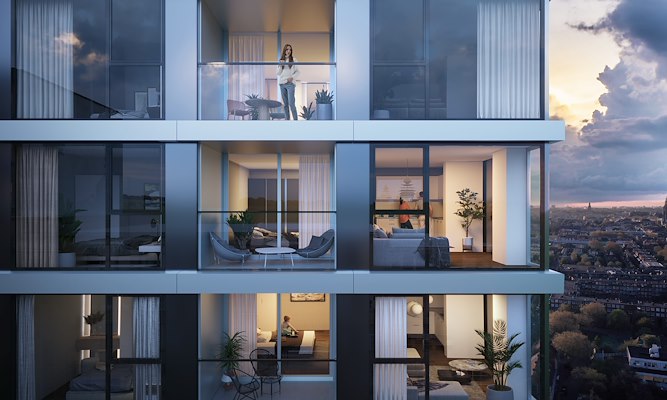 ontworpen project omvat vier gebouwen met in totaal 1.171 woningen, die worden verbonden door een driehonderd meter lange onderbouw met functies als horeca en bedrijfsruimte. Het meer dan 75.000 m² omvattende project wordt het grootste prefab woningbouwproject van Nederland.