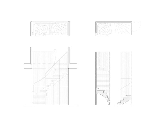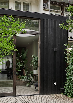 De studieruimte vormt een ‘en-suite’ met de aangrenzende ruimte en is afsluitbaar door middel van verborgen schuifdeuren. Het middelste bamboe volume steekt door naar de eerste verdieping en bevat een sculpturale trap.