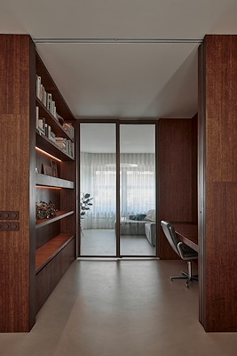 twee appartementen samengevoegd tot een royale en eigentijdse gezinswoning. De architecten hebben gestreefd naar een harmonieuze samenhang tussen de leefruimten, een sterke verbinding met de buitenruimte en een combinatie van esthetiek en gebruiksgemak.