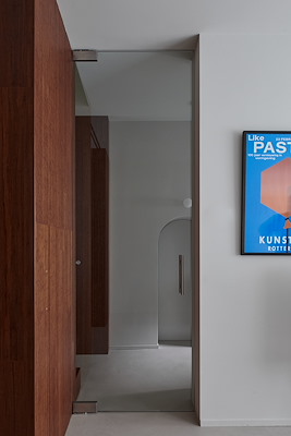 Een opvallend element in de woning vormen de drie multifunctionele bamboe volumes. Met hun natuurlijke uitstraling dragen ze bij aan een warme sfeer in het interieur. De volumes fungeren als subtiele room dividers tussen de woonkamer en eetkamer; daarnaast herbergen ze een royale bergkast, een toiletruimte en een studieruimte.