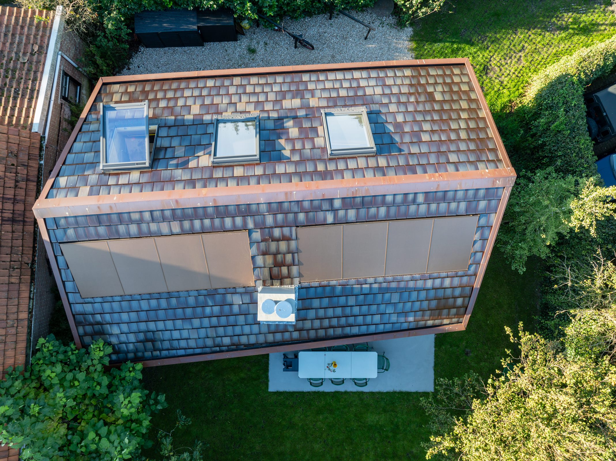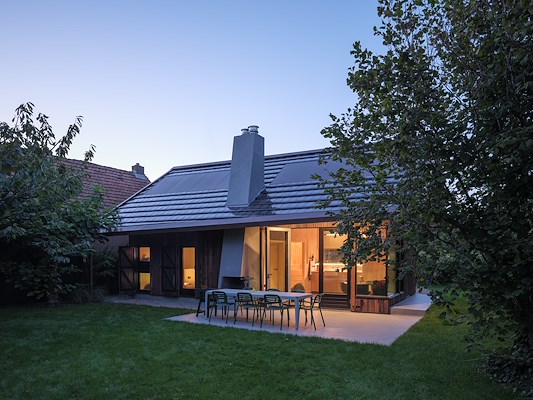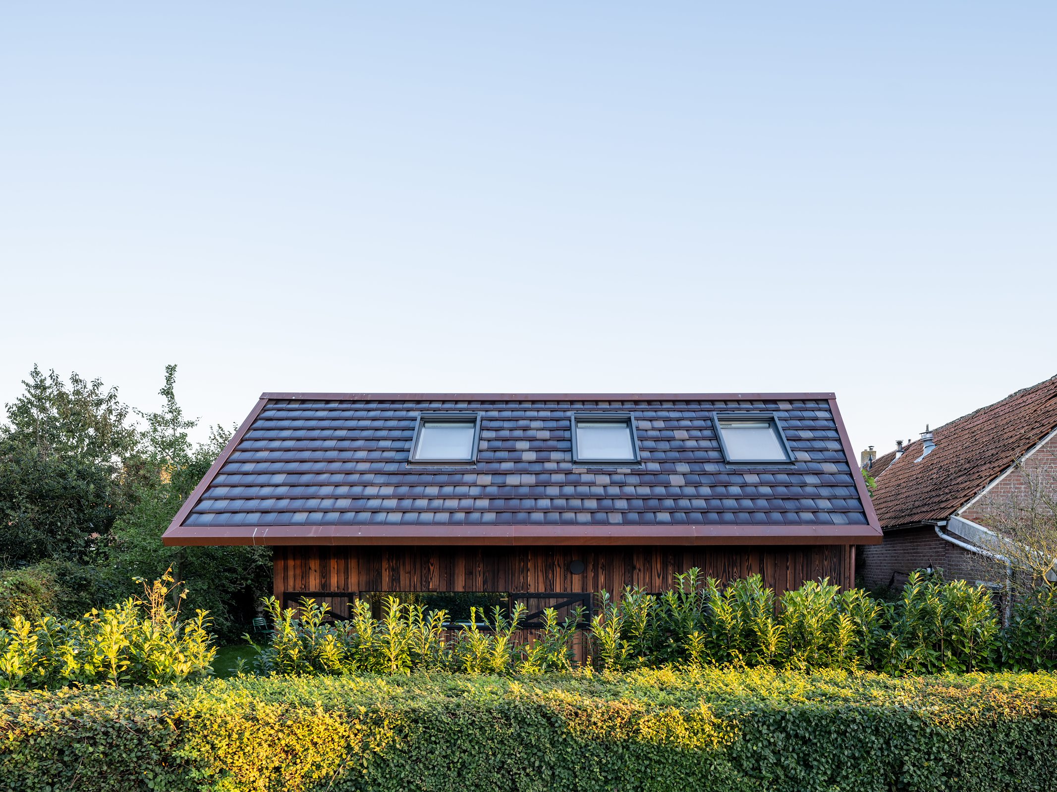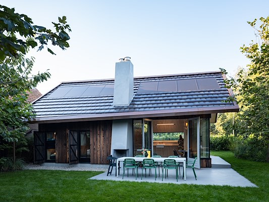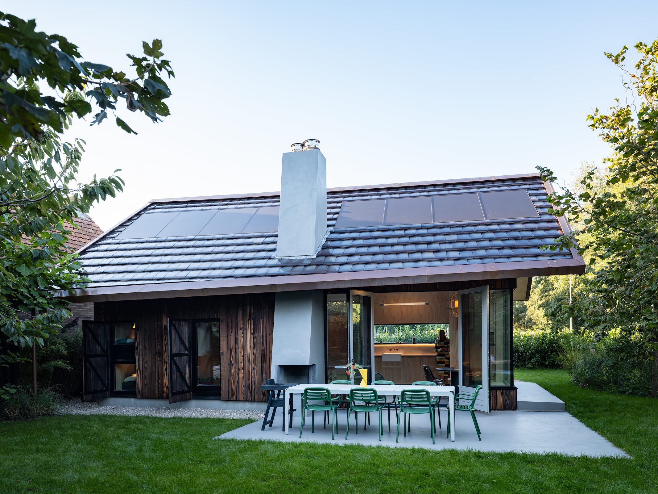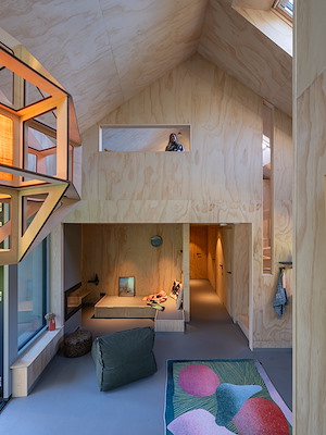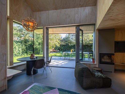 Deze ingrepen zijn gedaan om het huis een eigenwijs karakter te geven, terwijl het tegelijkertijd past bij de traditionele bebouwing die het dorp en het eiland kenmerkt. “Voor Terschelling is dit een bijzonder huis”, vertelt Van der Zwaag. “Er zijn maar een paar vakantiehuizen onder architectuur gebouwd. Do Janne en ik zijn vier keer naar de welstand geweest om de plannen toe te lichten en de leden ervan te overtuigen dat dit huis weliswaar bijzonder is, maar ook past binnen de context. We hebben ze tekeningen laten zien, materiaalsamples, details en een prachtige houten maquette door Team V.”