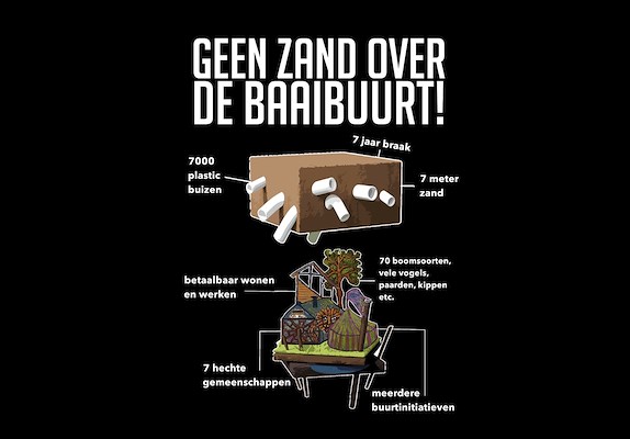 Eind dit jaar worden alle tijdelijke contracten van bewoners en ondernemers opgezegd, waarna zij een ander heenkomen moeten zoeken. Mede om die reden, maar ook omdat in de plannen van de gemeente niet genoeg rekening gehouden zou worden met het karakter van de Baaibuurt en de karakteristieken van het landschap, hebben zij samen met de genoemde bureaus een alternatief plan gemaakt. Ook in dat plan is ruimte voor 1.800 woningen, bezweren zij.