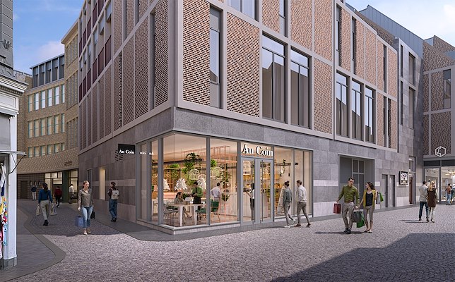 Het voormalige warenhuis van V&D aan de Grote Staat in Maastricht krijgt een nieuwe bestemming als woon- en winkelcomplex Inde Lanscroon, naar een ontwerp van