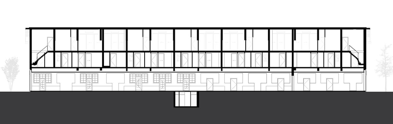 Het ontwerp is omkeerbaar, meldt het architectenbureau verder. Mocht in de toekomst een invulling met andere woningtypologieën of een geheel andere bestemming voor het gebouw gewenst zijn, dan kan het pand opnieuw worden ingedeeld binnen de ‘logica van de oorspronkelijke architectuur’, aldus Rijnboutt.