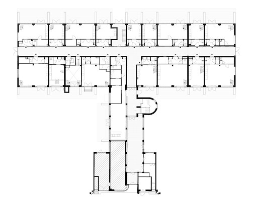 De ontwerpaanpak voor het woongebouw omschrijft Rijnboutt als “een vorm van doelgerichte terughoudendheid”. De logica van de oorspronkelijke architectuur is als uitgangspunt genomen en het bureau heeft ingezet op het leesbaar houden van ‘het gebouw als geheel’. Alle ontwerpbeslissingen zoeken aansluiting bij het bestaande gebouw, wat ook de verbinding met de buurt verstevigt.