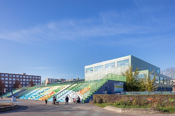 Het uit 2006 stammende gebouw De Kikker in Osdorp is ontworpen en in 2012 uitgebreid door