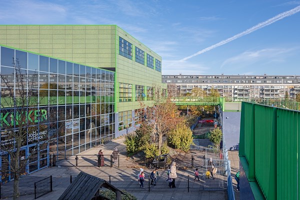De Kikker biedt plek aan twee basisscholen, een kinderdagverblijf en een GG&GD. Twee jaar geleden werd het schoolplein al vergroend, door nieuwe bomen te planten en een natuurspeeltuin aan te leggen.