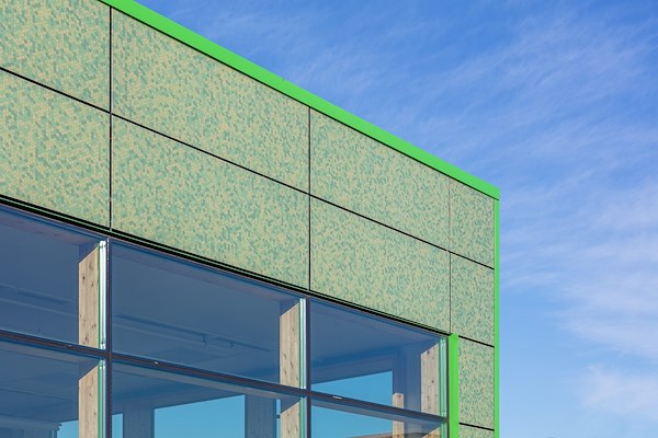 heeft Dok architecten de platen voorzien van een patroon van groene en gele tinten.