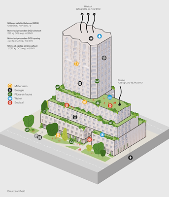 De toren is ontworpen met aandacht voor duurzaamheidsmaatregelen op het vlak van materialen, energie, water, flora en fauna, maar ook voor en sociale cohesie. Elke categorie, zo leggen de architecten uit, is erop gericht om het gebouw toekomstbestendiger te maken; om het een ontwikkeling te maken met een lange houdbaarheid, duurzaam ingebed in het stedelijk weefsel en gebouwd op een verantwoorde wijze.