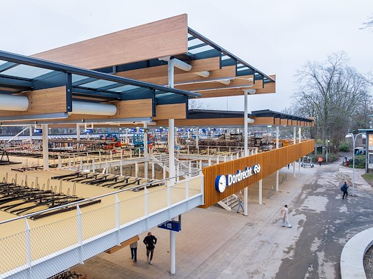 Nieuwe entree en demontabele fietsenstalling voor parkzijde station Dordrecht