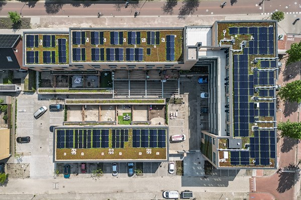 De woningen zijn voorzien van zonnepanelen, de installaties zijn energiezuinig en de schil van de woningen is optimaal geïsoleerd. Op het binnenterrein waar de bewoners kunnen parkeren, zijn ook elektrische deelauto’s geplaatst. Voor deze faciliteit is zorgvuldig een half overdekte garage met pergola’s en veel groen ingepast.