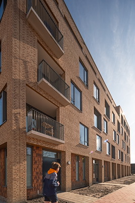 Deze afwisseling in typologieën heeft het bureau gecombineerd met een samenhangend materiaalgebruik. Bijvoorbeeld hebben de architecten gekozen voor een helder en rustig beeld met gebruik van hoogwaardige baksteen en aluminium kozijnen, waarbij over de gevels een patroon van kozijnen met diepe en ondiepe neggen ligt.