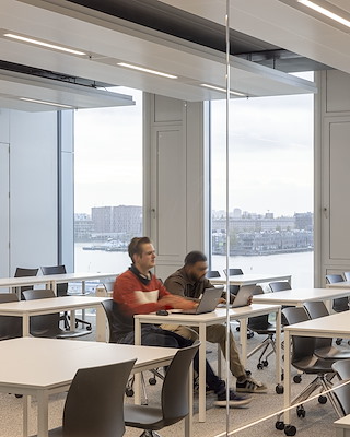 Hier zijn lokalen en overleg- of samenwerkruimten, van de gang gescheiden door glazen wanden. Gangen eindigen met een glazen gevel, zodat er daglicht binnenvalt en het zicht op buiten bijdraagt aan de oriëntatie. De open ruimten op de afdelingen zijn bedoeld als studieplekken, maar kunnen ook plaats bieden aan evenementen. In de toren zijn hiervoor de ruimten achter de glazen zigzag in de gevel benut, met panoramische uitzichten over de stad.