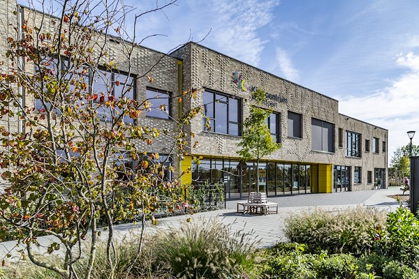 in gebruik genomen. Het gebouw biedt onderdak aan drie basisscholen en een kinderopvang. Het gebouw oogt als een geheel, maar door variatie in hoogte en gevelafwerking onderscheiden de verschillende volumes zich op subtiele wijze van elkaar.