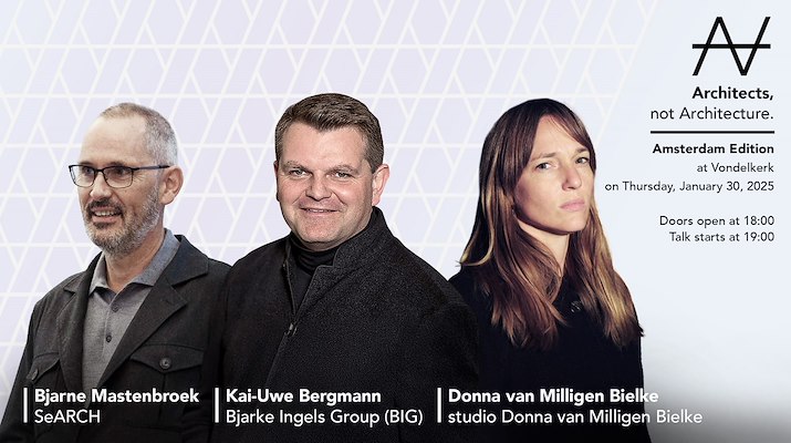 In de Vondelkerk in Amsterdam vindt op donderdag 30 januari een nieuwe aflevering van ‘Architects, not Architecture’ (AnA) plaats. Kai-Uwe Bergman (BIG), Bjarne Mastenbroek (SeARCH) en Donna van Milligen Bielke zijn sprekers tijdens dit evenement.